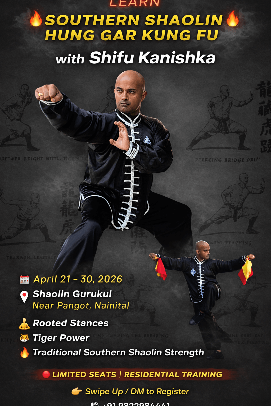 Shifu Kanishka will personally conduct the training, preserving the legacy passed on to him by Grandmaster Huang Nianyi.